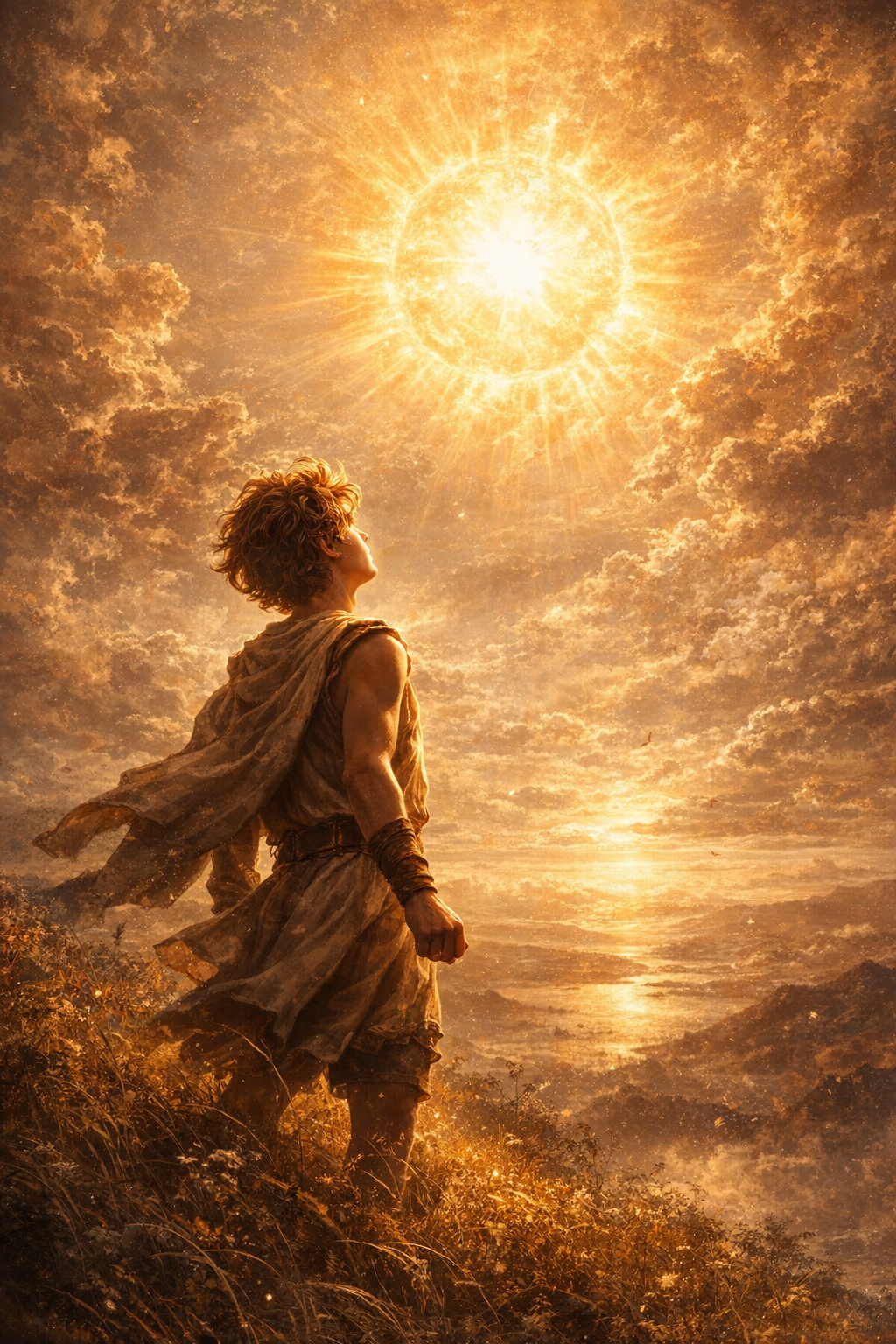 이카루스는 비명을 질렀습니다. 두려움이 아니라 — 환희의 비명이었습니다. 그는 새가 되었습니다. 인간이 처음으로 하늘을 정복한 순간이었습니다.