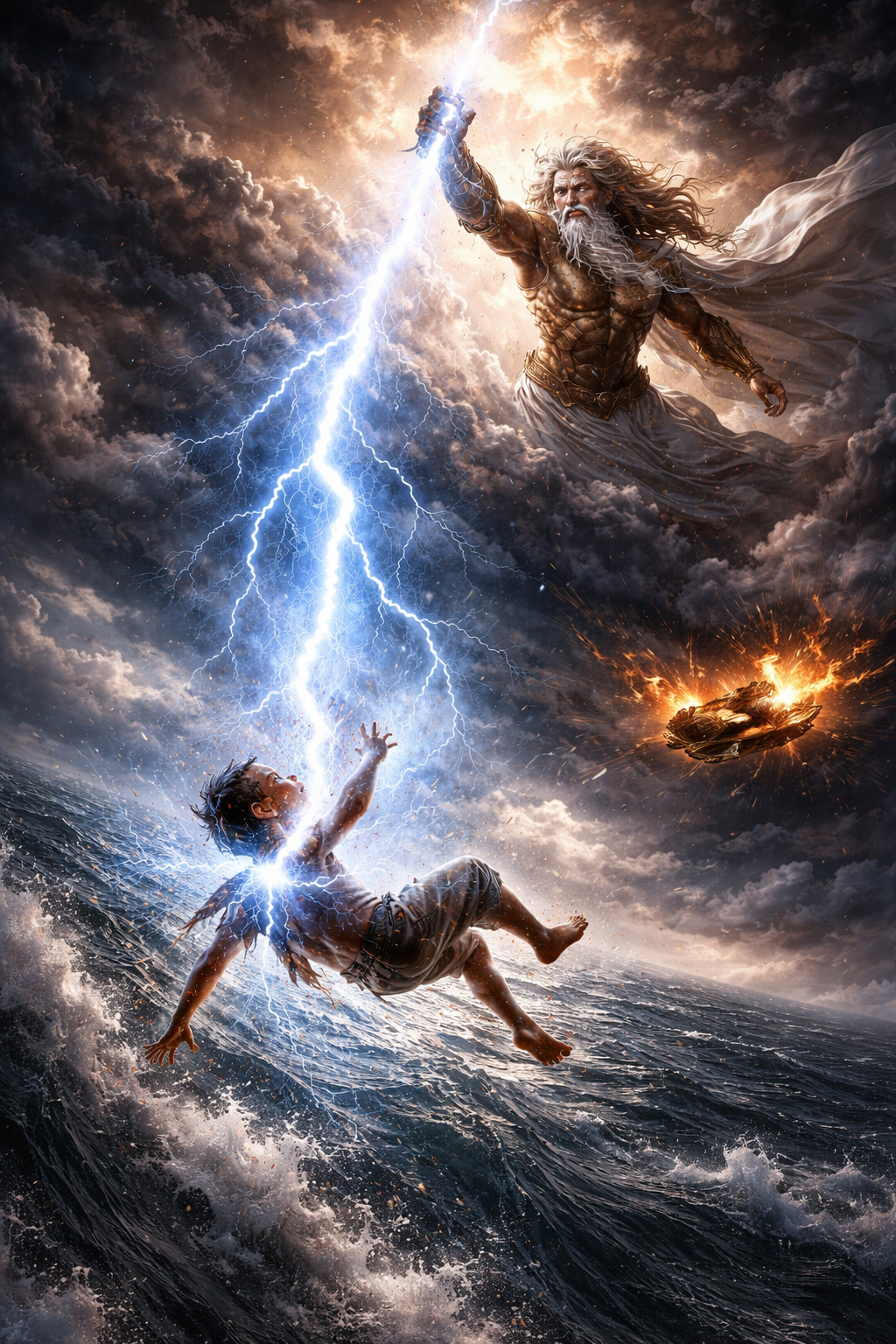 올림포스에서 제우스가 내려다봤습니다. 그가 사랑하는 세상이 — 불타고 있었습니다.
