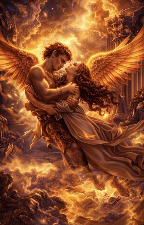 프시케가 눈을 떴습니다. 에로스의 얼굴이 보였습니다. 이번에는 — 등불이 아닌 태양빛 아래에서.