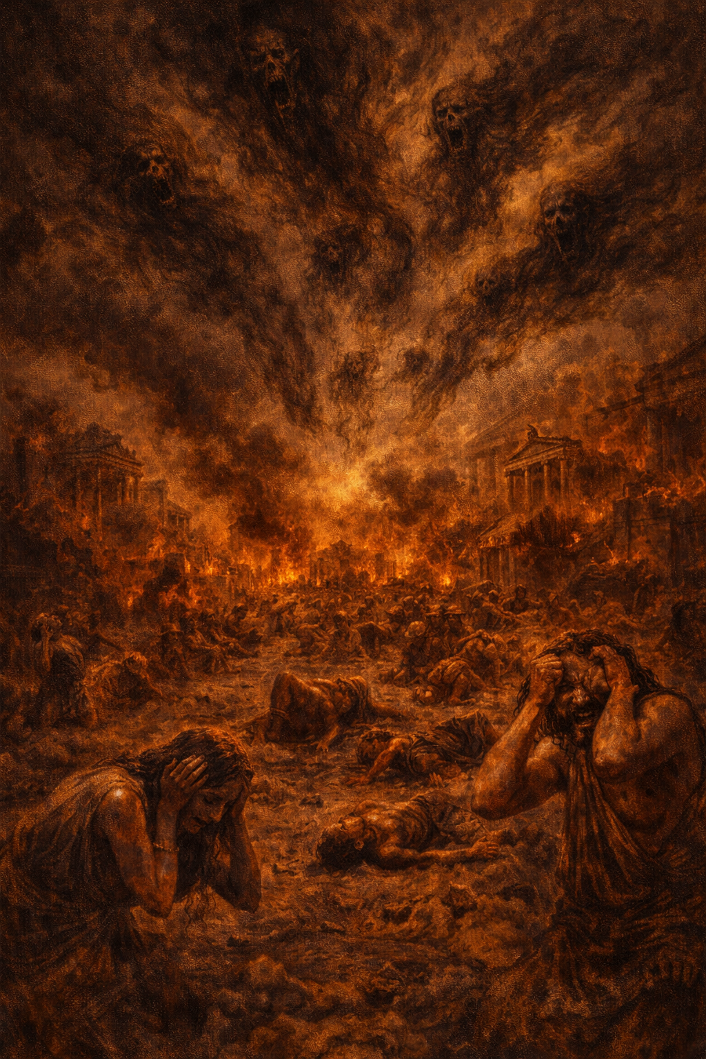 프로메테우스가 인간에게 준 불로 만든 문명 — 그 문명은 이제 질병과 전쟁과 죽음의 세상이 되었습니다.