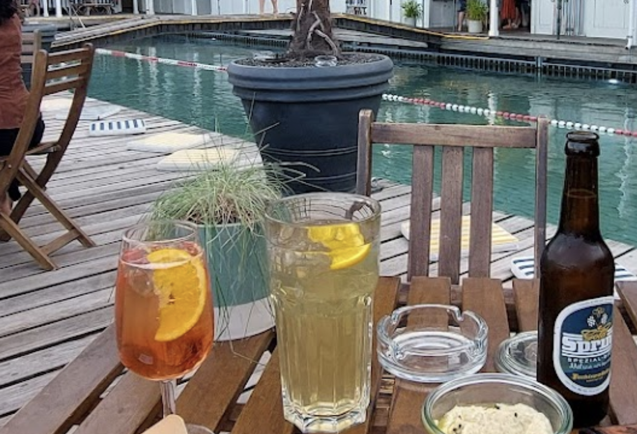 수영복을 입고 일광욕을 즐기는 사람들로 빈틈이 없는 카페의 모습은 특히 젊은이들이 선호하는 장소가 되는 이유이기도 하다.