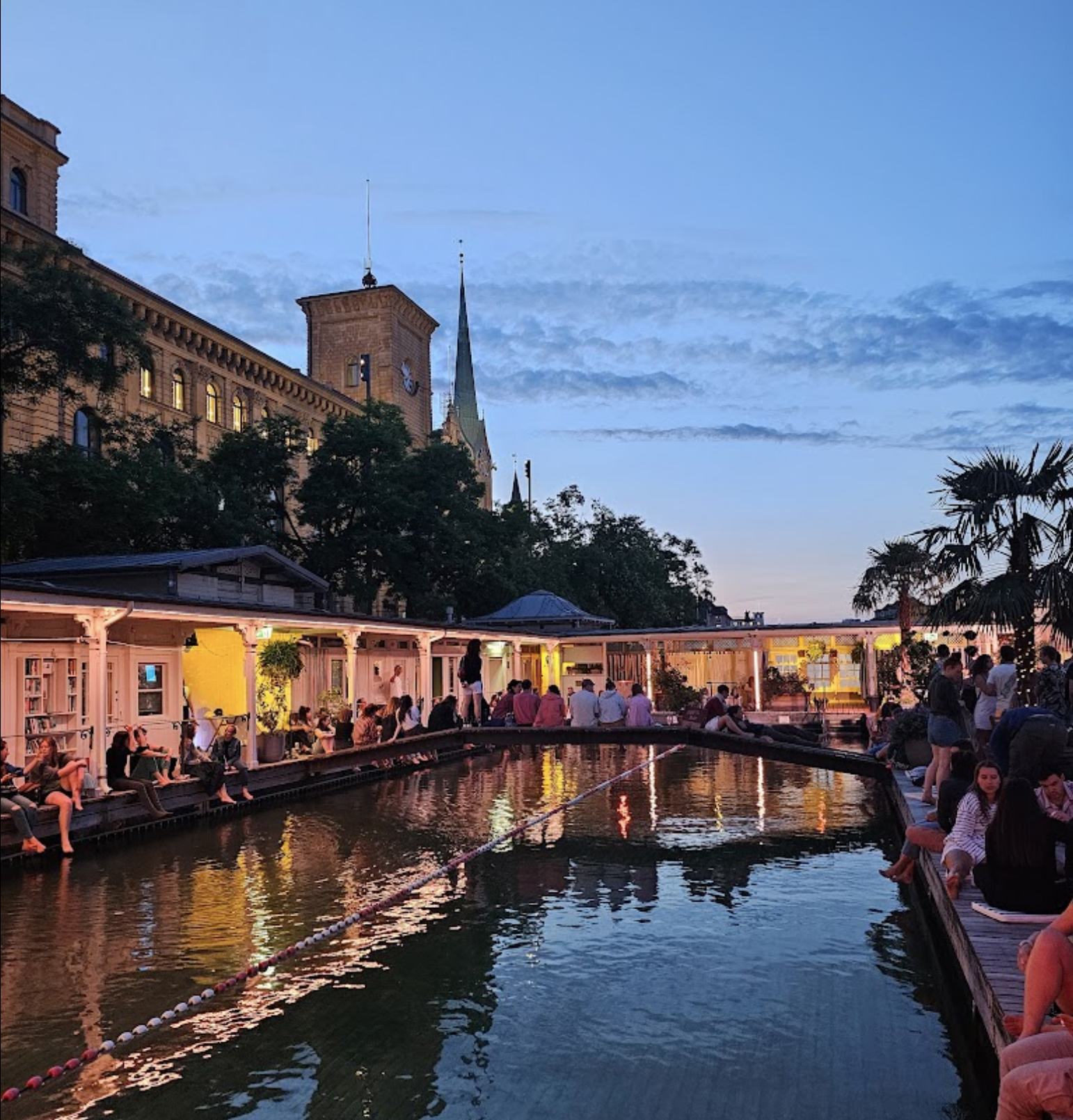 Frauenbad Stadthausquai는 취리히 호수로 가는 Stadthausquai가를 따라 남쪽으로 가면 찾을 수 있다. 겨울이 끝나면 수영장도 갖춘 카페로 취리히의 명물이다.