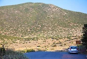 여름의 자외선이 강렬한 속에도 보이는 오르코메노스의 정상 부근은 이곳에서 보면 다른 야산들과 전혀 다르지 않다.
