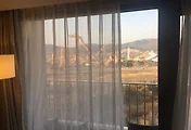 창문을 통해 광장 맞은 편에 있는 술탄아흐메트 모스크 또는 블루모스크가 신기루처럼 보입니다. 무려 천년이나 후에 지어졌지만 기술적으로는 아야소피아에 한참 뒤쳐진 모스크입니다.