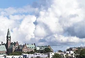 그 지붕을 따라 눈길을 돌리면 이번에는 성모 마리아 대성당의 종탑이 눈에 들어온다. 어디를 보나 하늘에는 아름답고 풍성한 뭉게구름이 가득하다.
