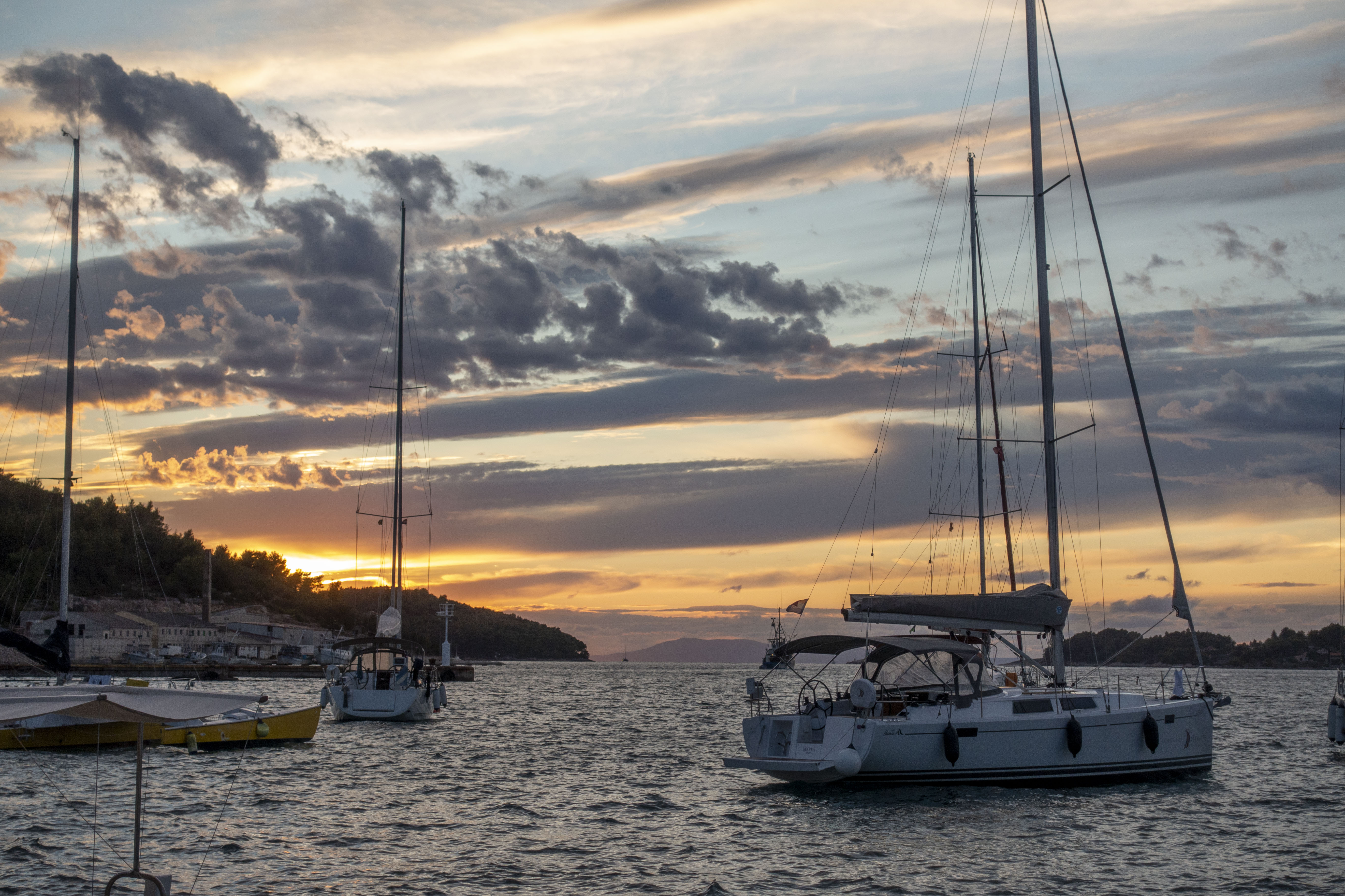 오후 해질녘에 바라보는 바다는 회색의 먹구름조차 석양에 아름다웠다. 여름이 무척 건조한 아드리아해와 에게해지만 그날은 하늘 곳곳에 멋진 구름이 한 줄 서정시 같은 풍경이다.