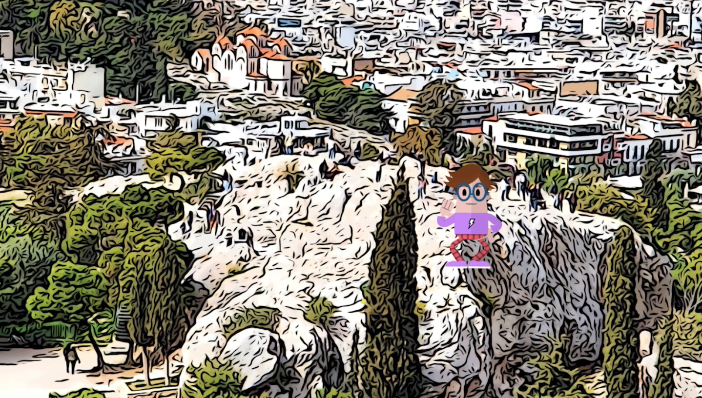 난 지금 아테네 있는 아레오스파고스 언덕에 있어요