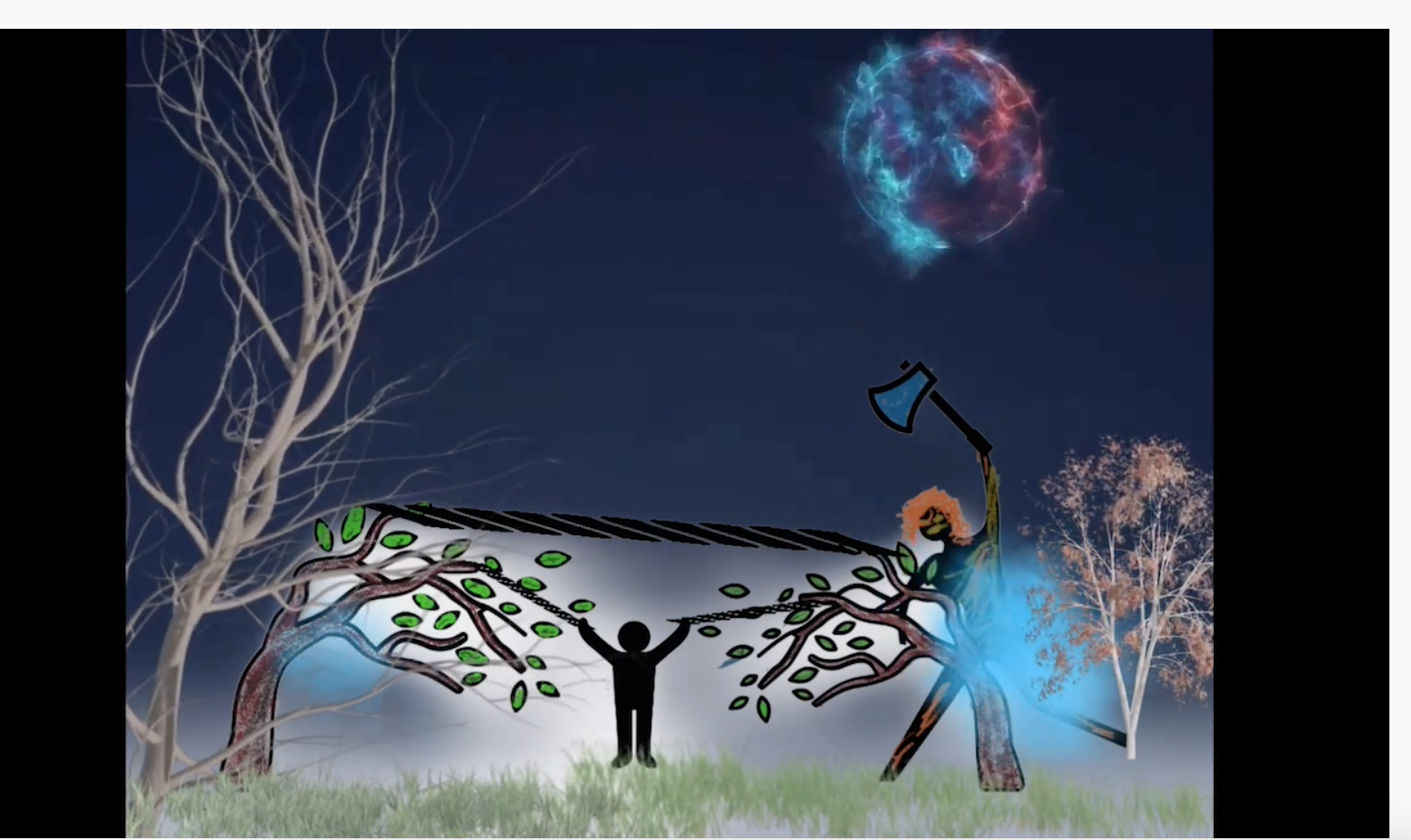 마주보는 두 나무를 구부려 놓고