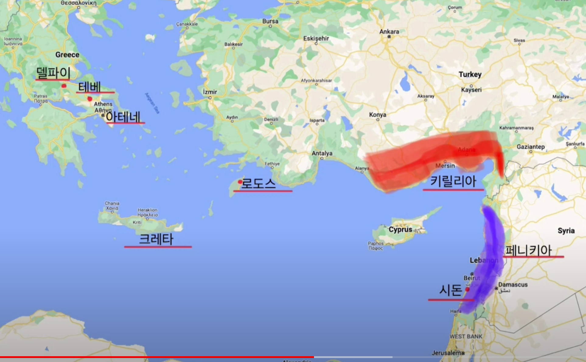 육지를 빙 돌아 로도스 섬에 가서