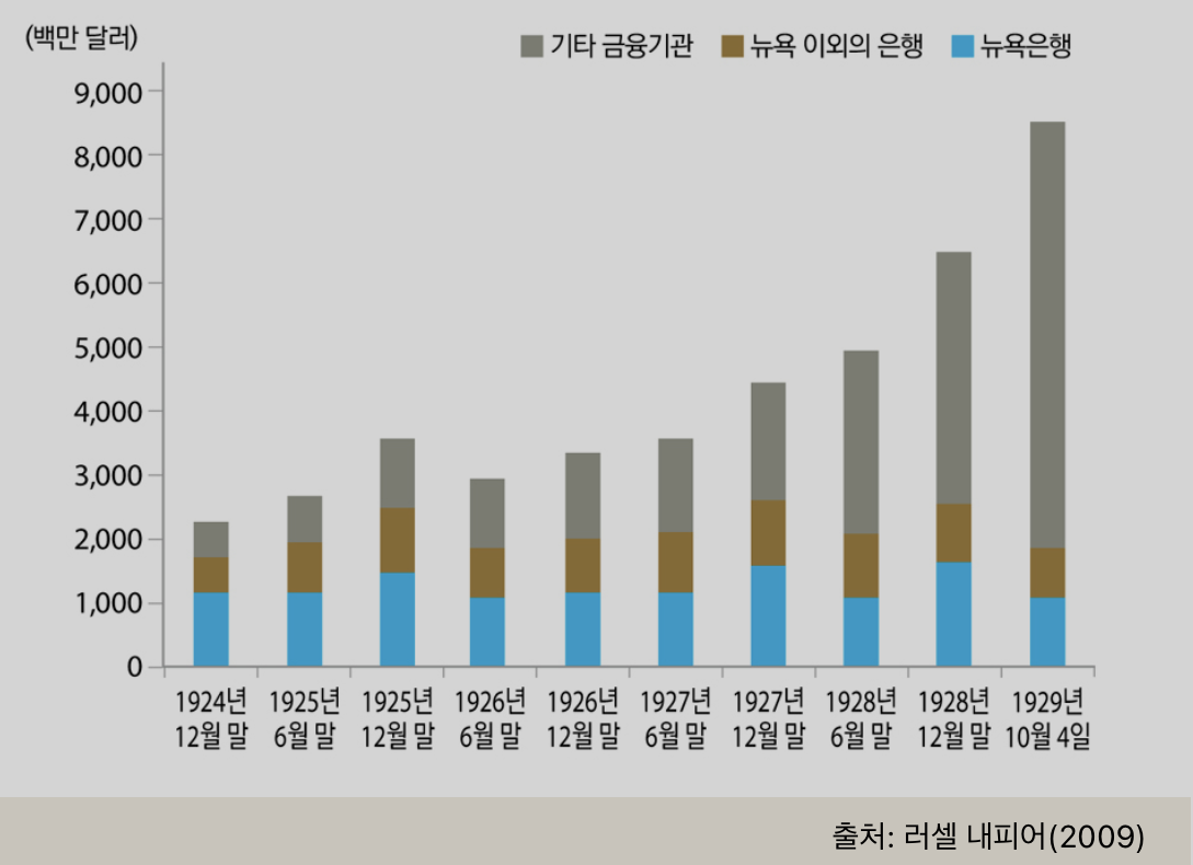 이때 뉴욕 연방준비은행이 금리를 올리기 시작했다. 1928년 2월 3.5%에서 1929년 8월에 6%까지...