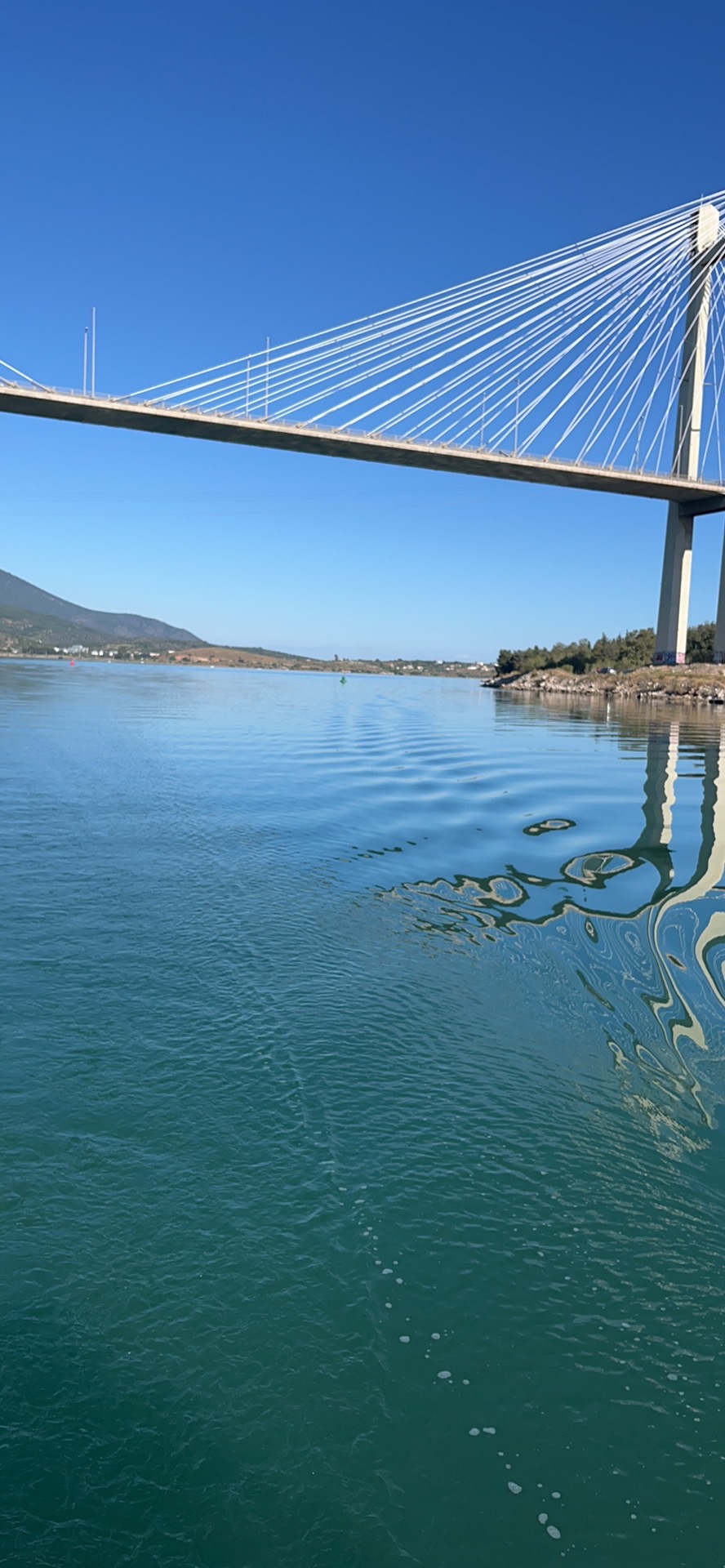 푸른 하늘 아래, 바다는 거울처럼 잔잔했다. 햇빛이 바다에 부딪혀 반짝이는 모습은 마치 별들이 흩뿌려진 듯했다. 우리는 그리스의 Chalkis를 떠나, 이제 바다를 가로지르는 다리 밑을 향해 천천히 항해하고 있었다.