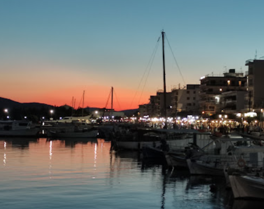 저녁 식사는 화이트 와인을 곁들여 문어 다리 구이와 수브라키, 파스타 등으로 모두 식사를 마쳤다. 바다 공기가 좋아서 인지 제법 많은 양의 와인을 마신 후에도 취하지 않는다. 배로 돌아가는 길에 항구의 야경이 아름다웠다. 밤 9시 반이 되었는데도 아직 석양이 남아있었다.