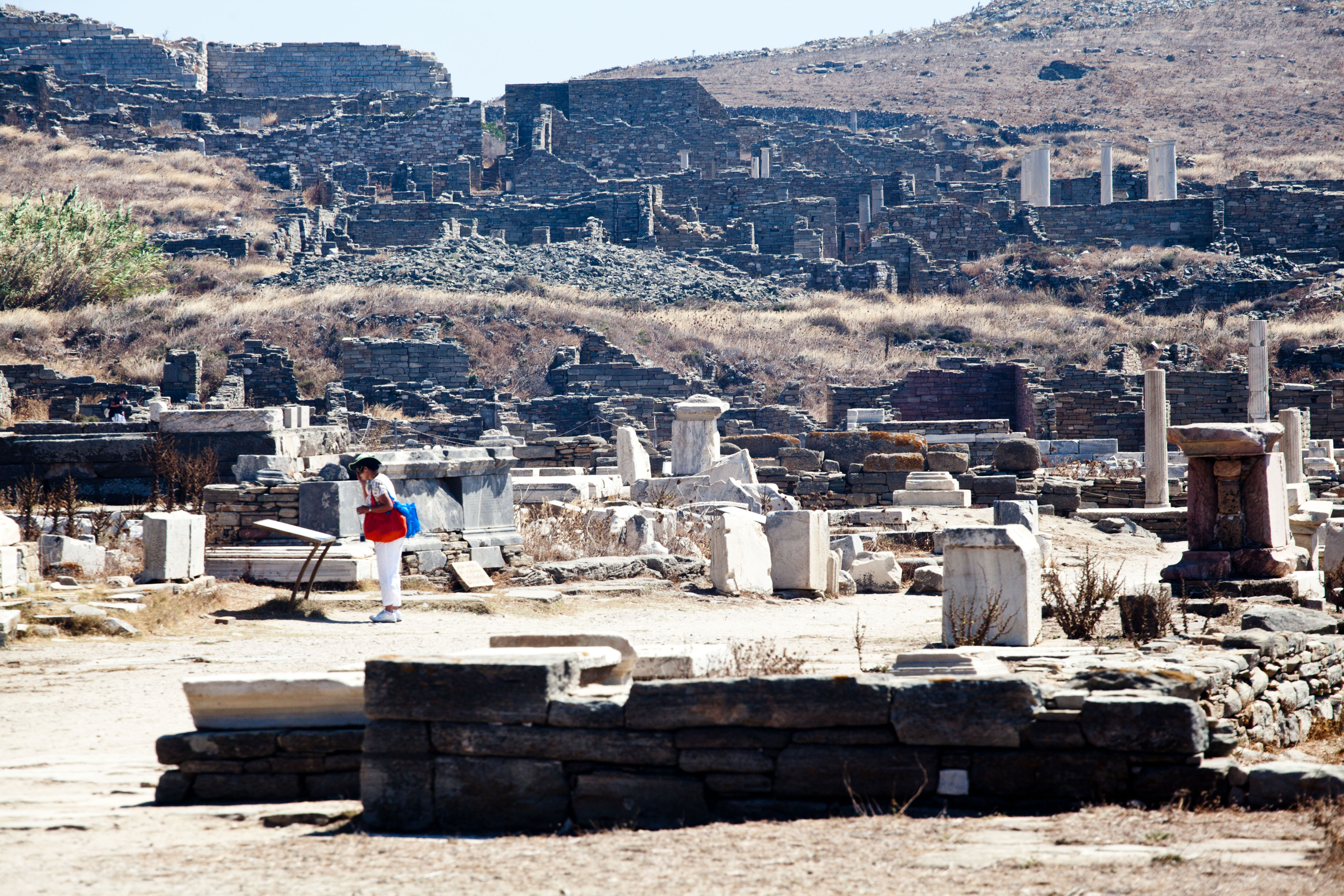 선착장에 도착하자마자 보이는 것은 넓은 유적지와 폐허로 남은 건축물들. 특히 아폴로 신전은 압도적인 규모와 기운으로 저를 사로잡았습니다. 고대 그리스의 신앙과 문화가 그대로 남아 있는 듯한 분위기는 가슴을 뛰게 만들었습니다. 신전 주변에 흩어진 석조물과 조각품들, 그 중에서도 섬의 상징인 ‘사자 테라스(테라스 오브 라이언스)’는 눈길을 사로잡았습니다. 길게 늘어선 사자상들이 마치 섬을 수호하는 듯한 모습이 인상적이었죠.