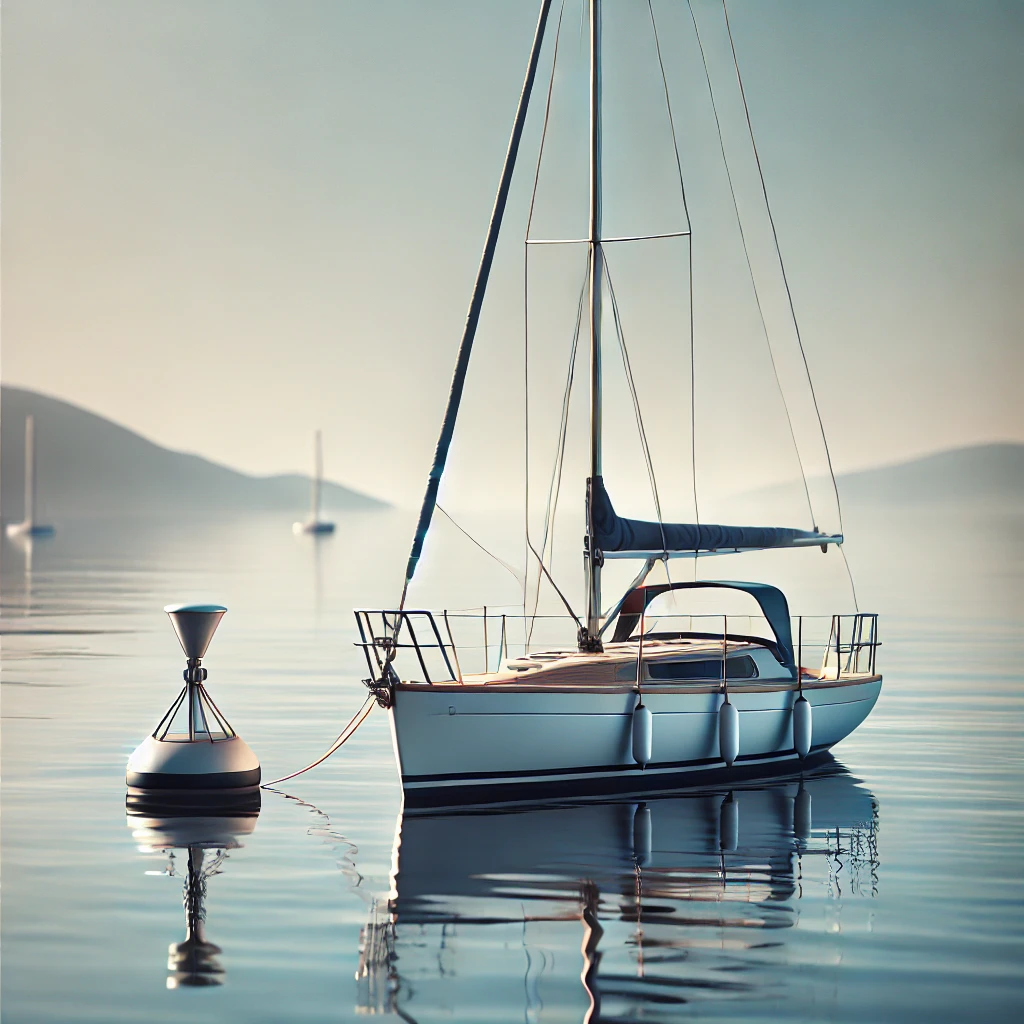 이곳에는 바다 중간에 배를 묶을 수 있는 부표가 있다. 부표는 바다 속 콘크리트 블록에 연결되어 배를 안전하게 정박시킬 수 있다. 선체와 장비를 점검하며 4-5개의 부표를 살펴보고 적당한 것을 선택했다.