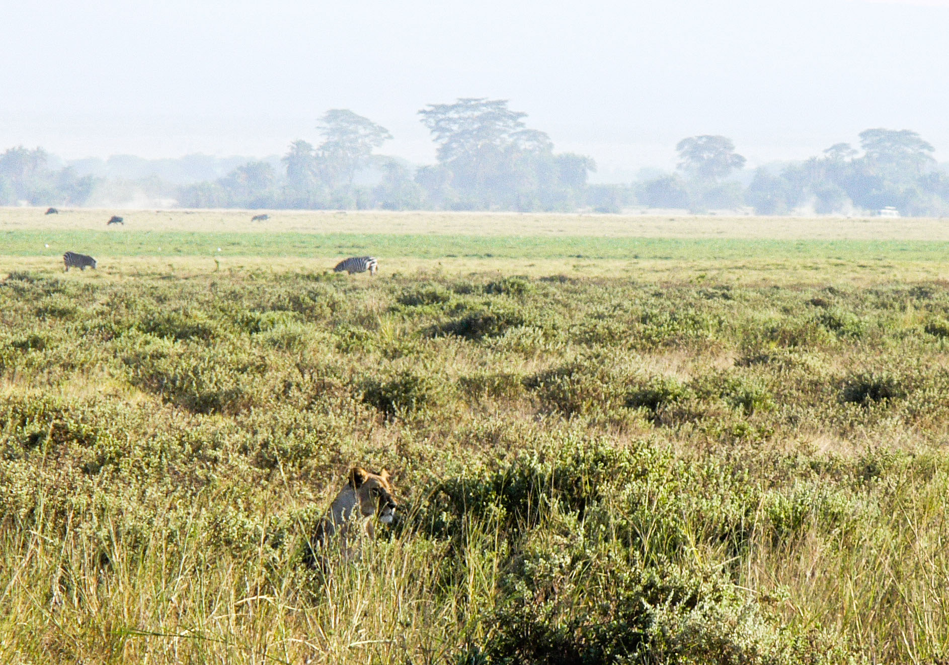 가이드는 역시 다르다. 낮은 풀 숲 앞에 차를 멈추고 사자가 있다고... 과연...