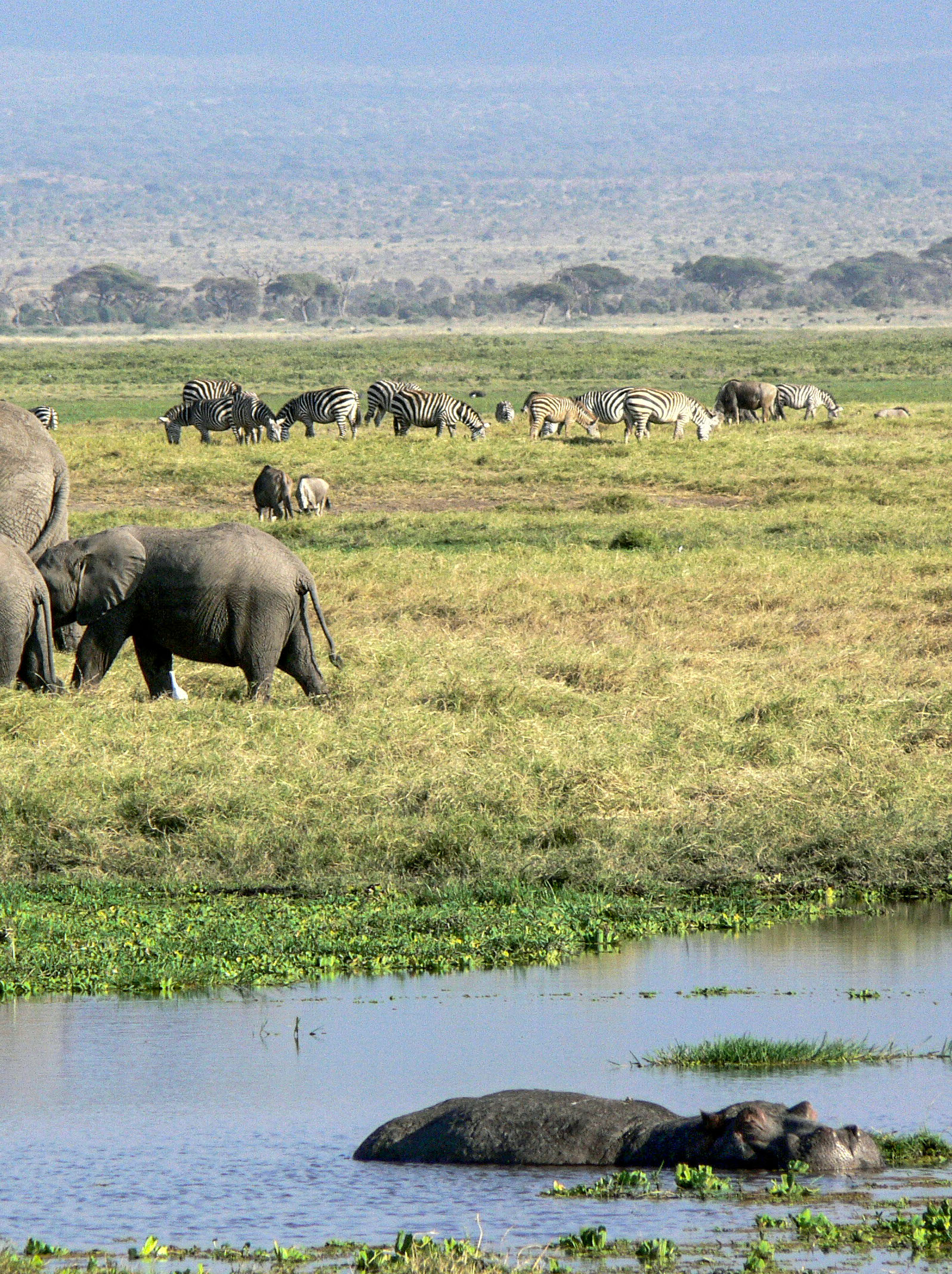 암보셀리 국립공원(Amboseli National Park)은 케냐 남부에 위치한 대표적인 자연 보호 구역 중 하나로, 특히 아프리카의 상징인 코끼리를 가까이서 관찰할 수 있는 곳으로 잘 알려져 있다. 암보셀리의 탁 트인 평원 너머로 킬리만자로 산의 장엄한 모습이 펼쳐지며, 해발 5,895m의 킬리만자로는 공원의 상징적인 배경이었다.