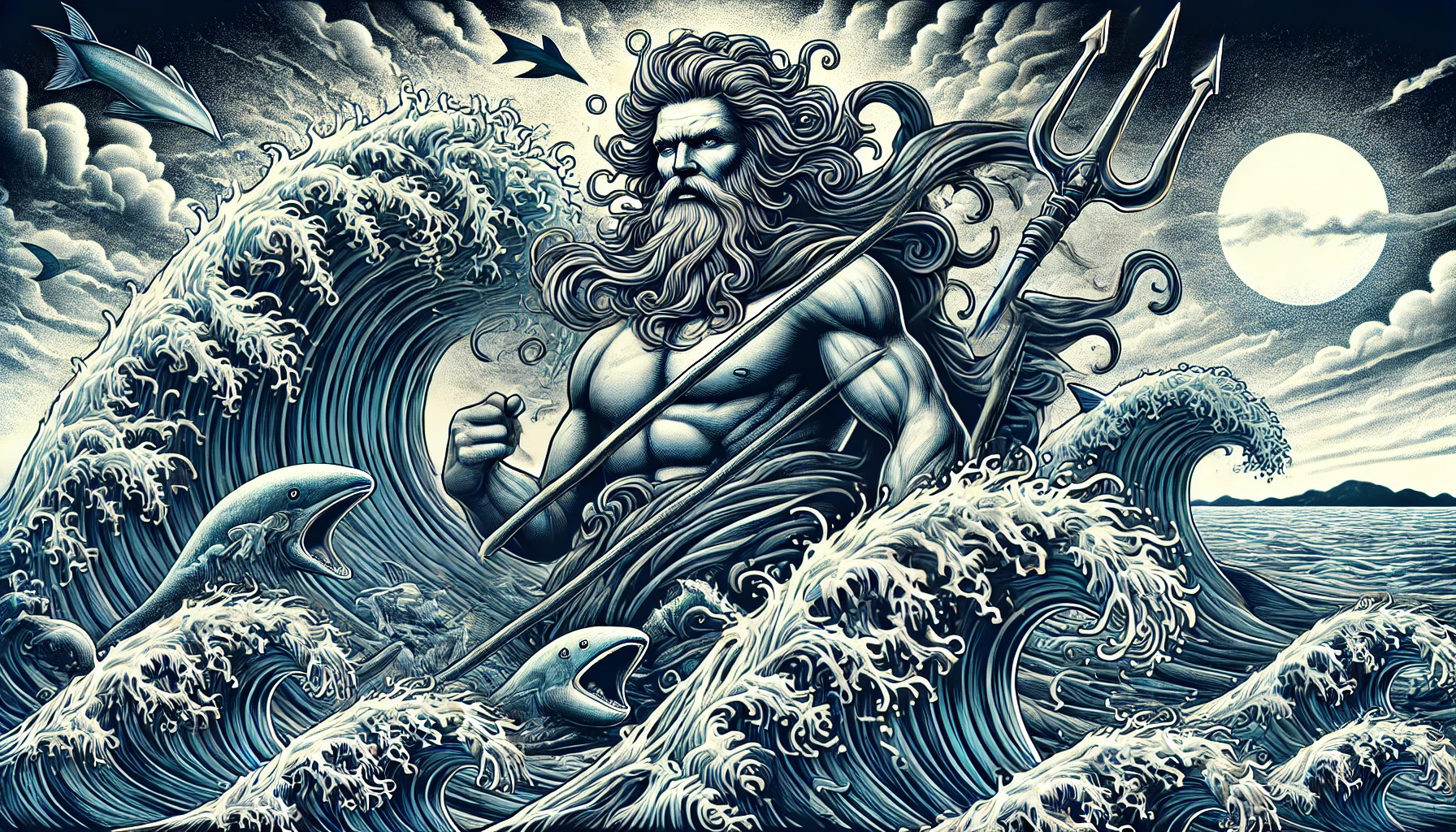 둘째 형 포세이돈은 바다를 관장하는 신으로, 세찬 성격과 강력한 힘을 지녔습니다. 그는 삼지창을 들고 바다와 지진을 다스리며, 때로는 평온한 바다를, 때로는 격렬한 폭풍우를 일으켰죠. 포세이돈은 감정적이고 때로는 다혈질이었지만, 그만큼 열정적이고 사랑이 깊은 면도 있었습니다. 올림포스 산에서는 제우스의 충실한 동맹이었지만, 자신의 바다 왕국을 무엇보다 중요하게 여겼기에 독립적인 성향이 강했습니다.