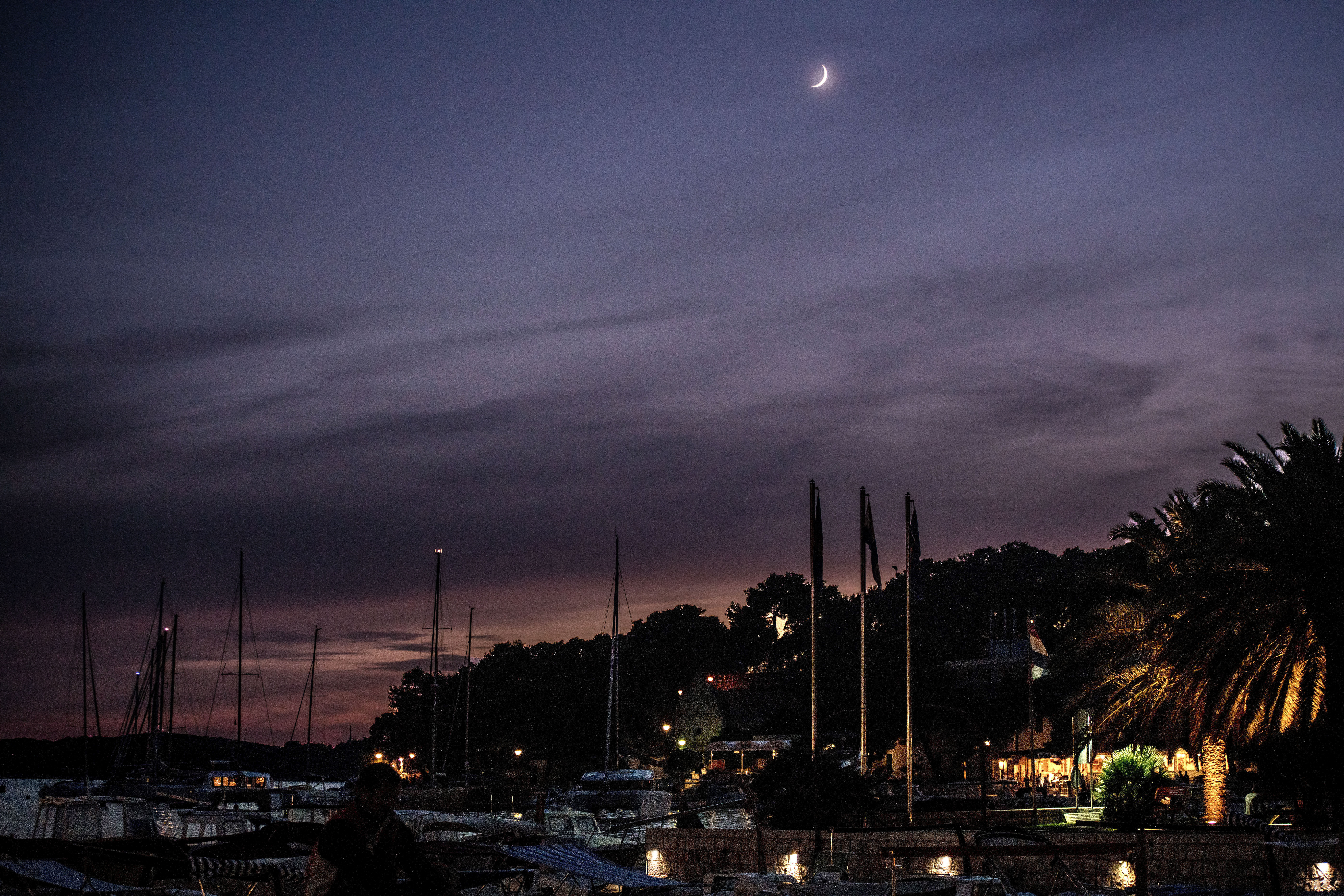 밤이 무르익으면 초승달이 요트들의 마스트 위로 떠오르는 풍경에 매료된다.