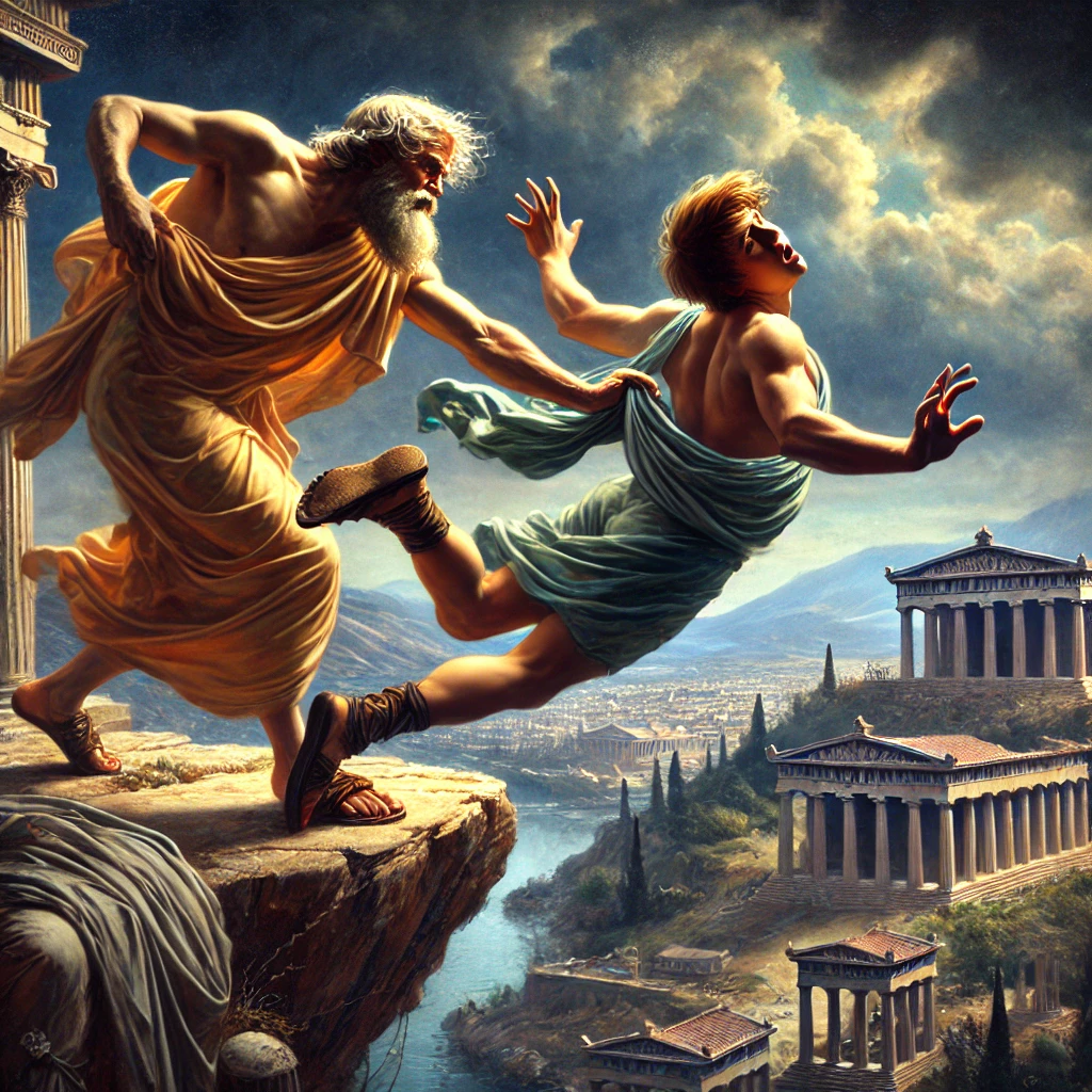 바람이 세차게 몰아치는 아테네의 아크로폴리스. 다이달로스는 도시를 내려다보며 긴 한숨을 내쉬었다. 천재적인 발명가이자 예술가였던 그는 한때 아테네의 자랑이었다. 그의 손에서 만들어진 동상들은 마치 살아 숨 쉬는 듯 생동감이 넘쳤고, 그의 기계 장치는 신들조차도 감탄케 했다. 그러나 지금 그는 추방될 상황에 놓여 있었다.