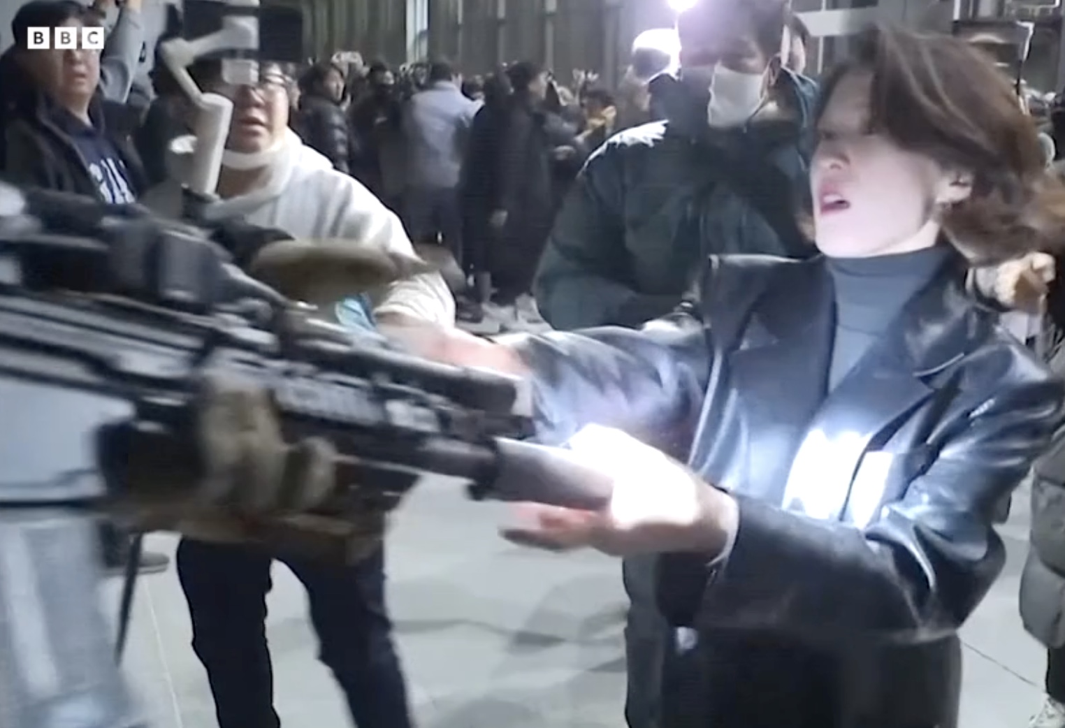 민주적 절차에 따라 선출된 대통령이 지극히 비민주적 심의과정을 거쳐 거의 독단으로 계엄을 선포했던 상황이 알려지면서 더욱 놀라울 뿐이다. 오늘 BBC 뉴스에는 젊은 여성에게 계엄군이 자동소총 총구를 겨누는 장면이 방송되었다.