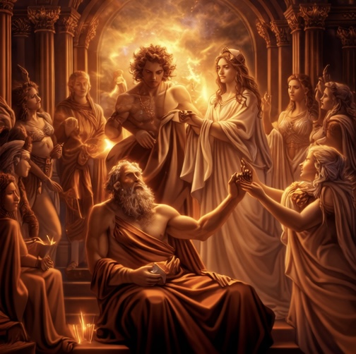 에로스는 프시케를 데리고 올림포스로 올라갔습니다. 제우스 앞에 섰습니다.