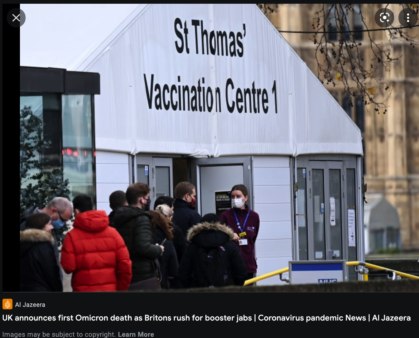 특히 중요한 것은 오미크론 변이 바이러스에 감염된 사람들이 대부분(majority) 2차 접종까지 백신을 맞은 사람들이라는 사실이다. 게다가 영국은 3차 부스터 접종도 43%를 마친 상태라고 한다. 런던에서는 이미 오미크론 감염이 다수 또는 대부분 (majority)을 차지한다. 영국 소재 한 연구소의 발표에 의하면 한달 안에 코로나로 입원하는 환자의 수가 1700 - 3600명에 이를 것이라고 예측하였다. 코로나가 극심했던 시기에 최대 입원환자는 4천명에 달했었다.