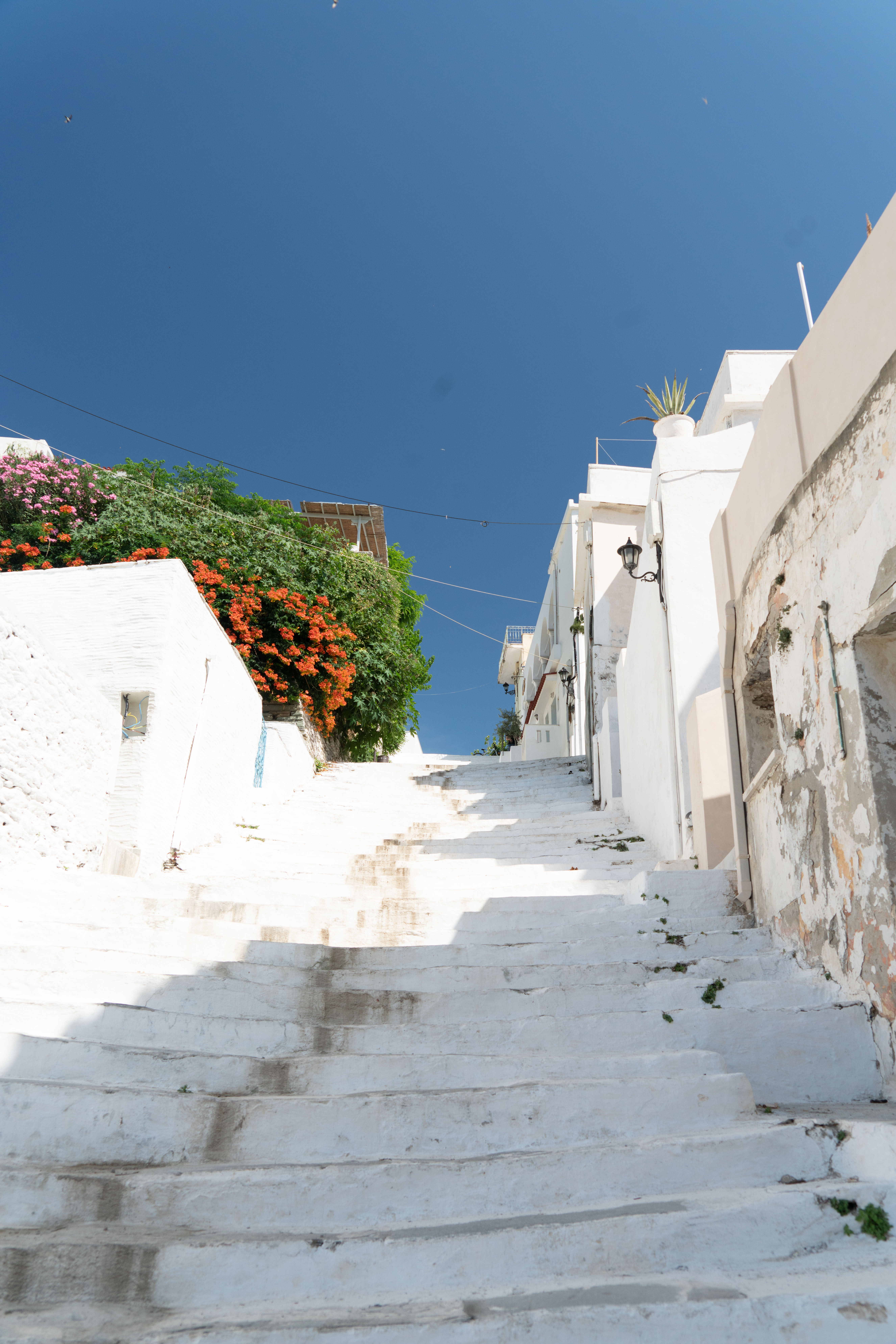안드로스 섬의 Chora 마을은 그리스의 전통과 역사가 녹아있는 곳이다. 아침 일찍 마을을 찾았을 때, 햇살이 골목과 하얀 집들 위로 부드럽게 내려앉아 있었다. 파란색 창문과 문이 곳곳에 배치된 하얀 건물들은 지중해의 색채를 한껏 드러내고 있었고, 좁은 골목을 따라 걷는 동안 오래된 섬의 숨결이 느껴졌다.