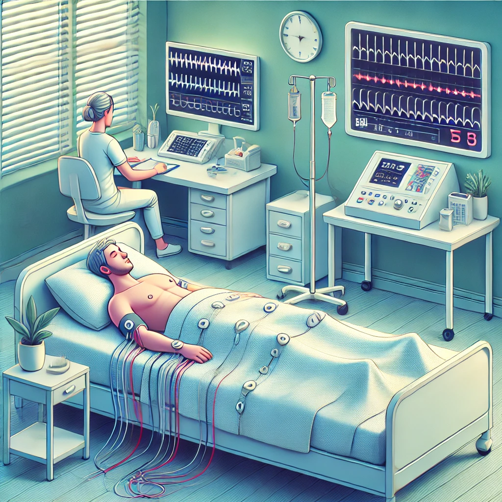 1. 다중 수면 다원검사 (Polysomnogram, PSG): 수면 연구실에서 하룻밤을 보내는 검사를 말합니다. 환자는 센서를 부착한 상태에서 잠을 자게 되며, 밤사이 뇌 활동, 심박수, 혈압, 산소 수치, 신체 움직임 등을 기록합니다.