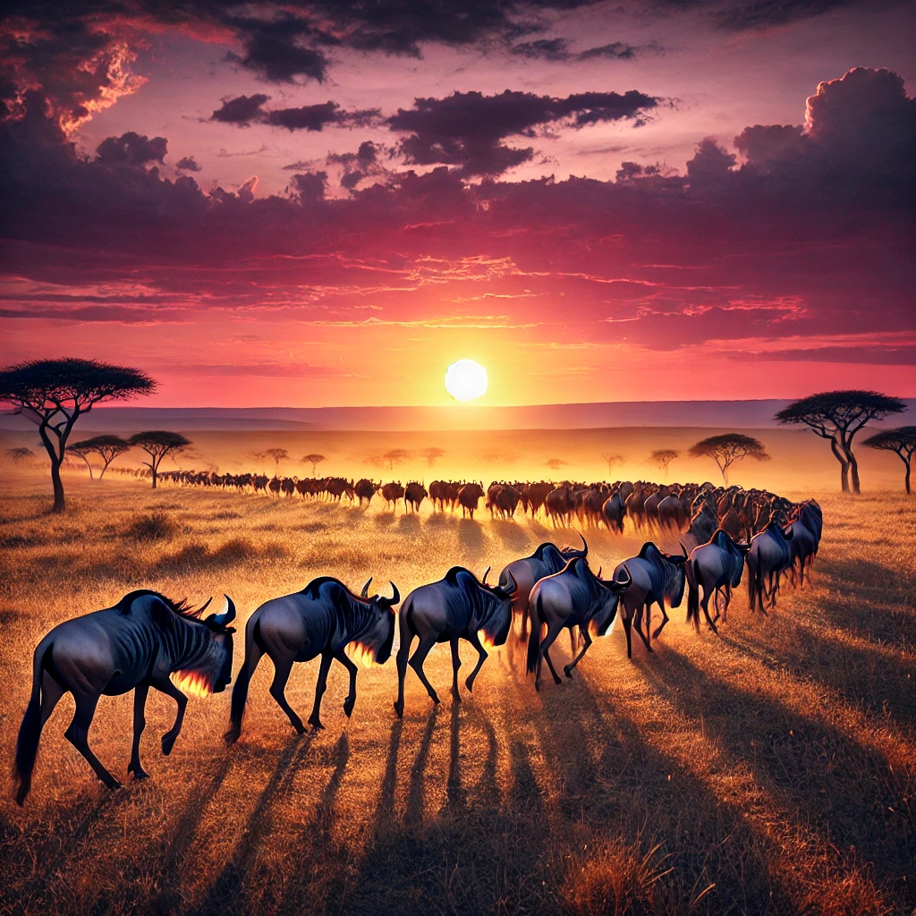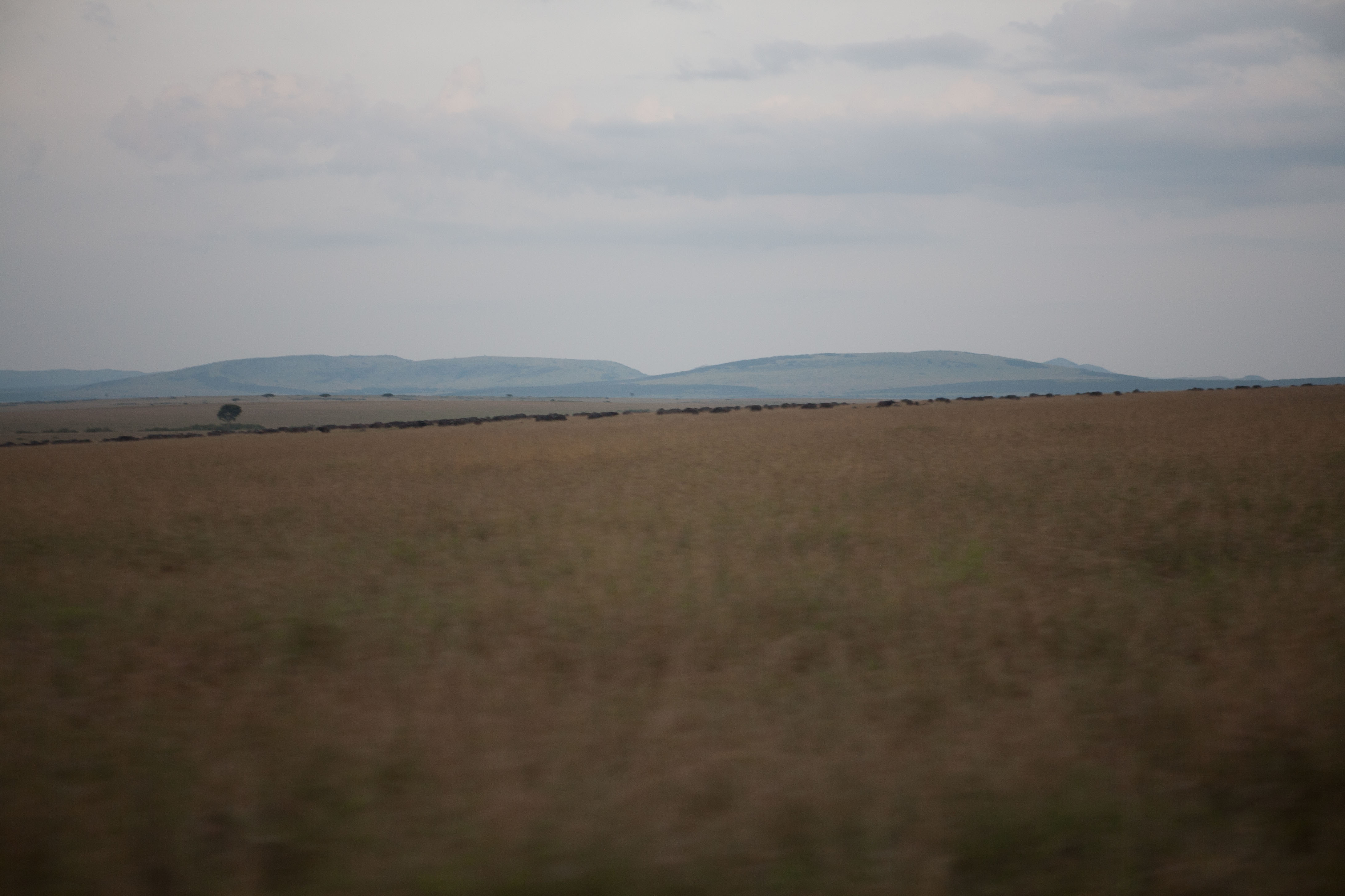 숙소로 돌아가는 길에 멀리 검은 줄처럼 보이는 물체들이 움직이고 있었다. 누 떼의 저 유명한 여름 이동이다.