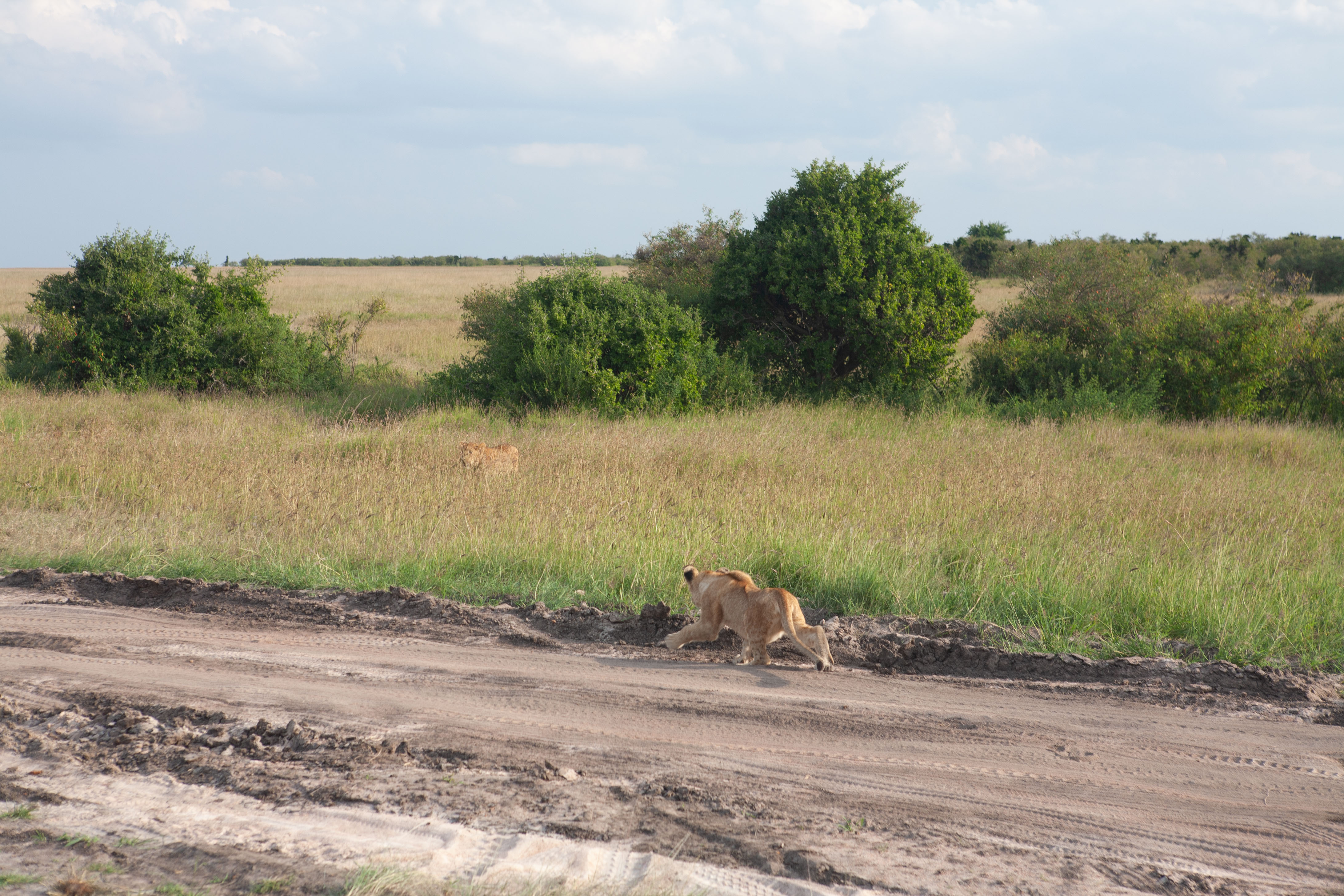 오후 사파리를 갔을 때, 차가 다니는 길 한 복판에 새끼 사자 한마리가 길을 가로막고 있었다.